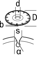 The permissible speed [min-1] or the circumferential speed [m/s] of the abrasive tools used must at least match the values given in the table.